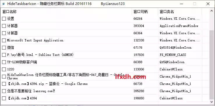 这便是今天要安利的好玩意儿,它可以隐藏任务栏上的任何图标,在它这里可以看到任务栏目前打开的所有程序,你只需要选择你要隐藏的,对应的图标就马上消失了,再选择即可显示,所以,有了这样的神器,你就可以光明正大的摸鱼了!